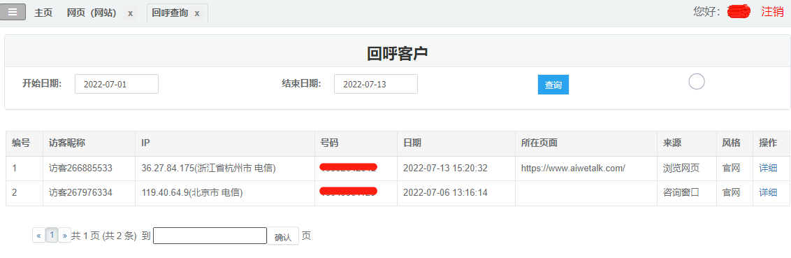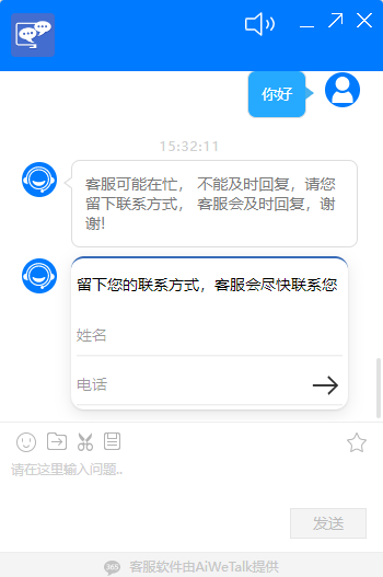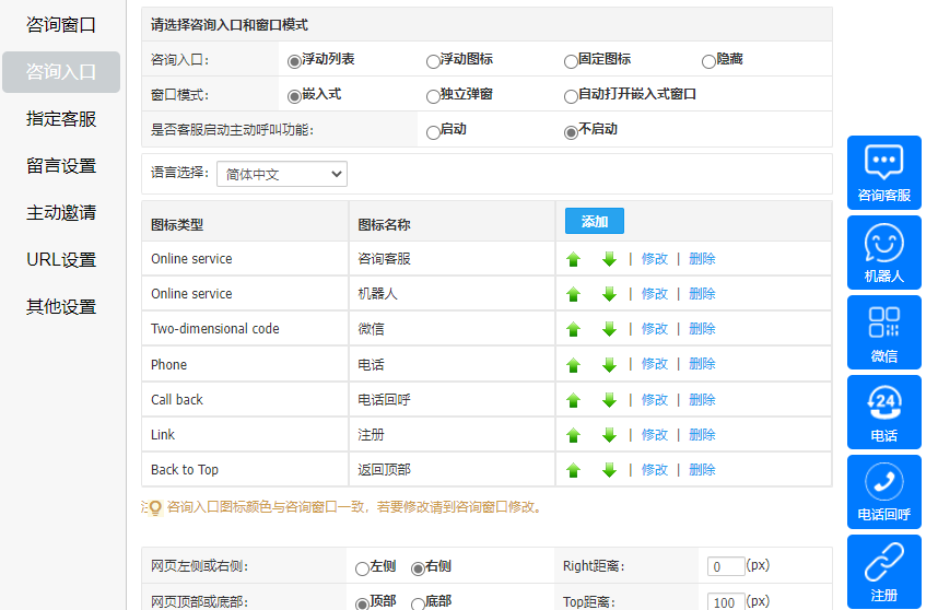 訪客可在客服休息時間或忙碌未及時回復時將自己的聯系方式留下,等待客服回呼解決問題,可在“系統設置-媒體對接-網頁(網站)-設置-咨詢入口”