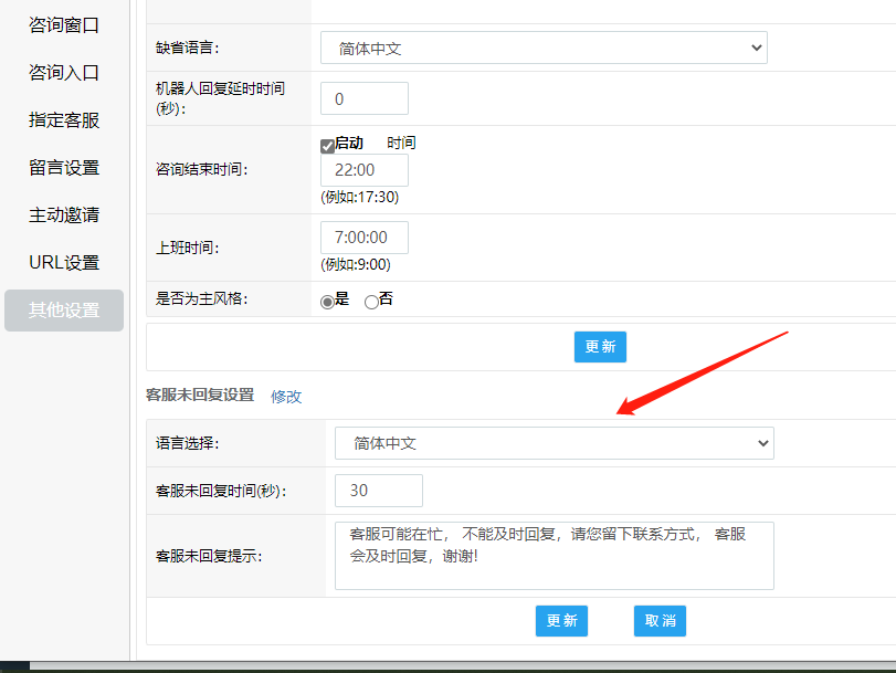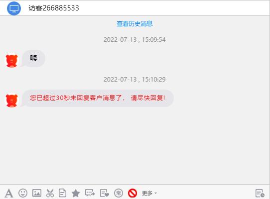 客服長時間為回復訪客可提醒客服訪客等待時間過長,盡快恢復,可在“系統設置-媒體對接-網頁(網站)-設置-其他設置”中開啟設置